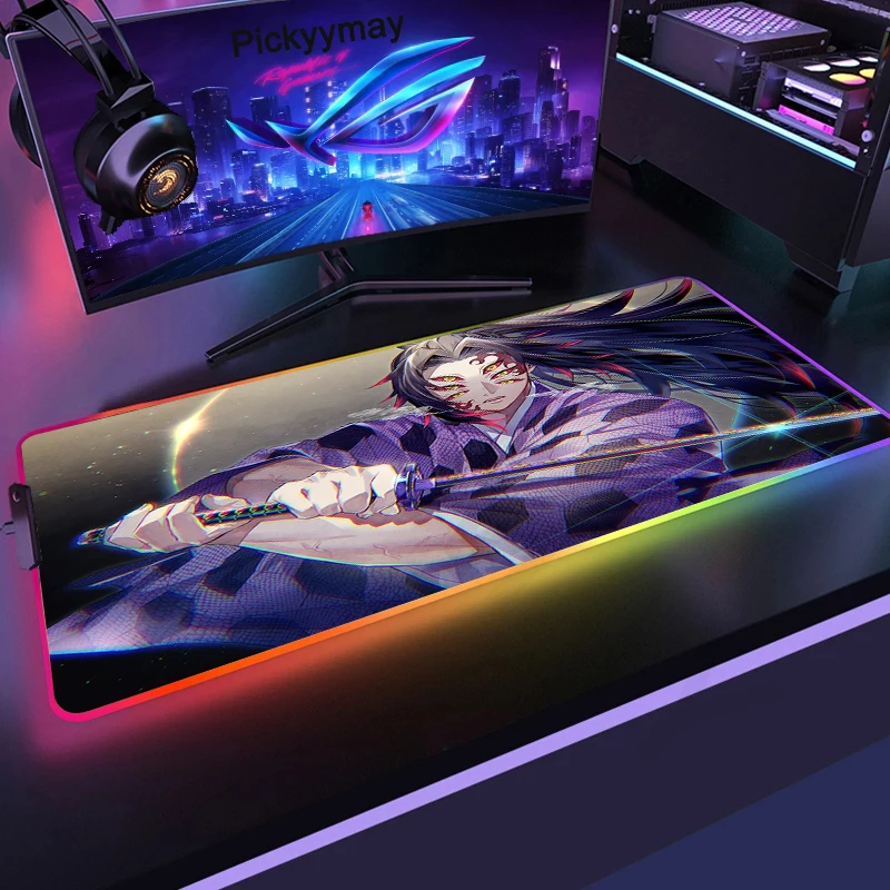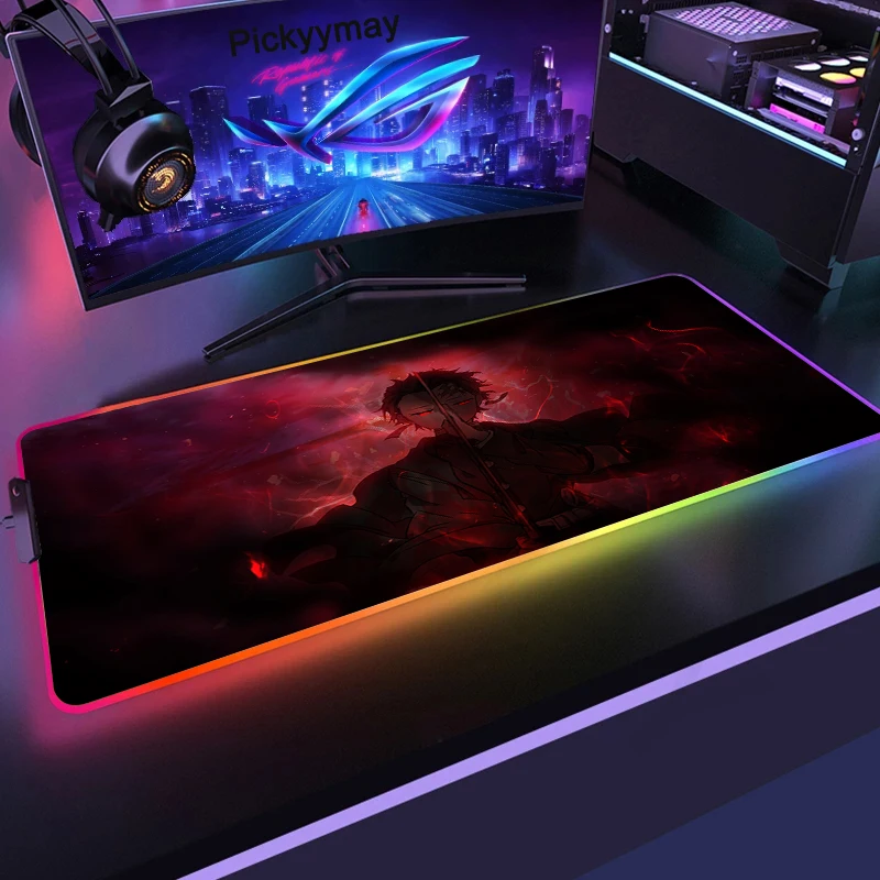 Anime Demônio Slayer Mouse Pad Gaming RGB Mousepad Grande Velocidade Gamer Mause Mat LED Backlight Gaming Acessórios Kimetsu No Yaiba